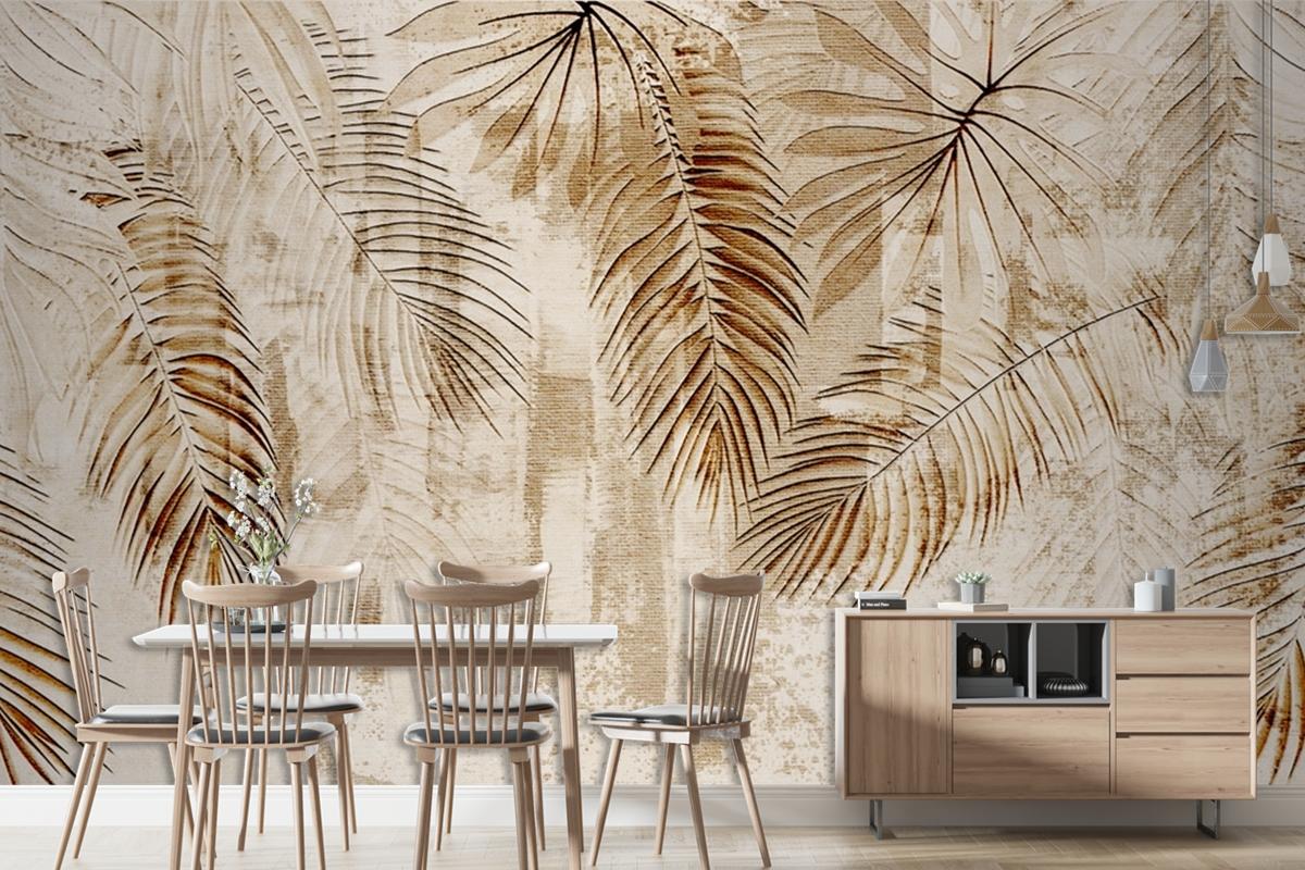 Paslanmış Palmiye Yaprakları Vintage Duvar Kağıdı