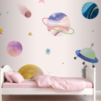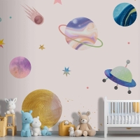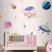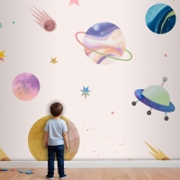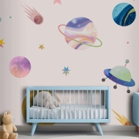 Pastel Arkaplanda Renkli Galaksi Suluboya Doodle Çocuk Odası Duvar Kağıdı