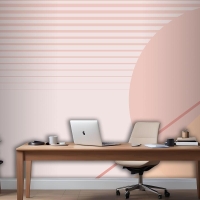Pastel Pembe Ve Turuncu Ofis Duvar Kağıdı Duvarında Ay Geometrik Manzara Arka Planı