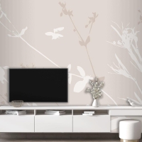 Pastel Renklerde Çiçek Silüetleri Tv Arkası Duvar Kağıdı