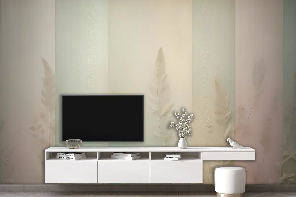 Pastel Renklerde Dikey Çizgilerin Yer Aldığı Minimalist Soyut Çiçekler Tv Arkası Duvar Kağıdı