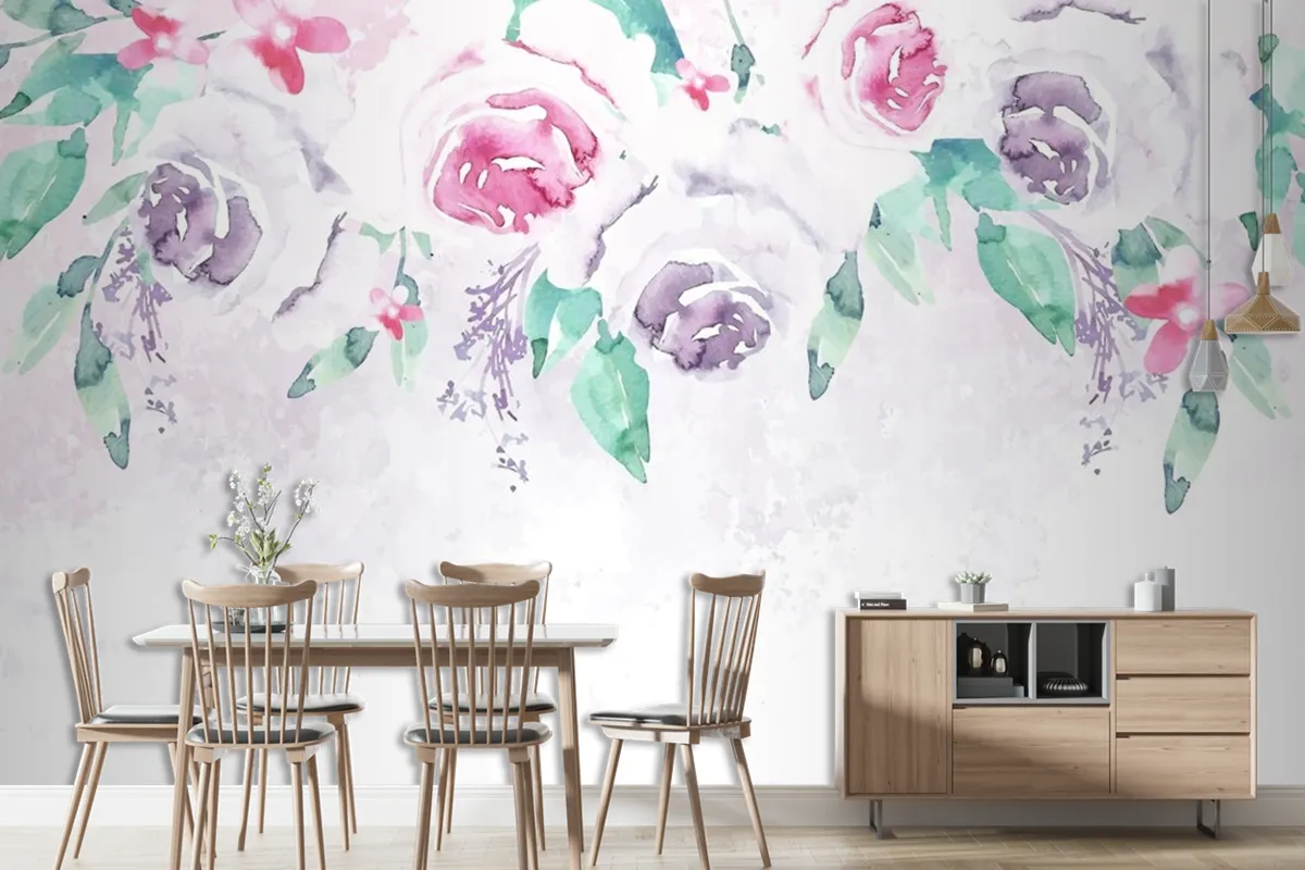 Pastel Renklerde Suluboya Çiçek Duvar Kağıdı Duvar Kağıdı