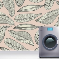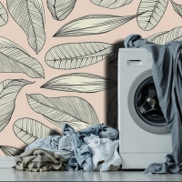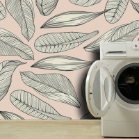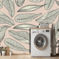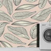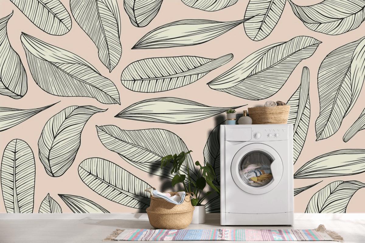 Pastel Renkli Arka Plan Duvar Kağıdı Ile Doğrusal Tropikal Yapraklar