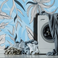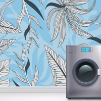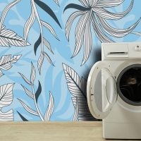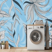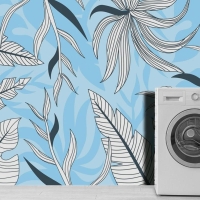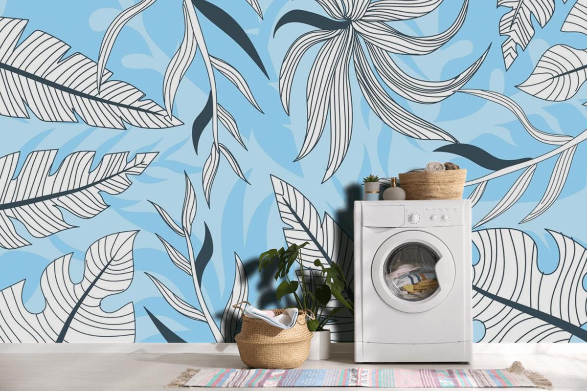 Pastel Renkli Çamaşır Duvar Kağıdı Ile Doğrusal Tropikal Yapraklar