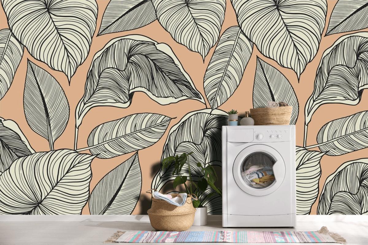 Pastel Renkli Doğrusal Arka Plan Duvar Kağıdı Ile Tropikal Yapraklar