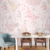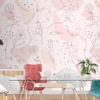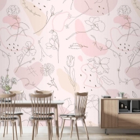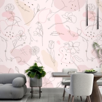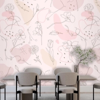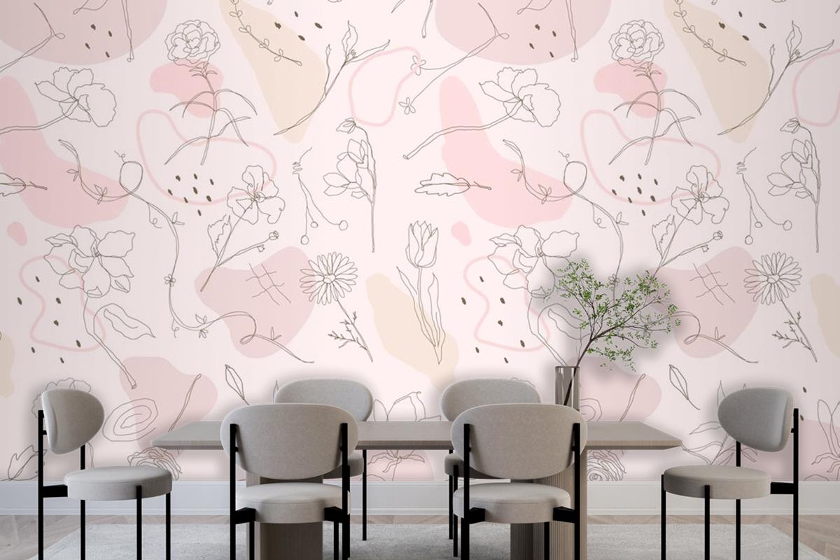 Pembe Çiçek Desenli Duvar Kağıdı Elle Çizilmiş Stil Duvar Kağıdı