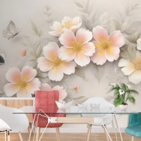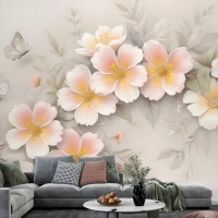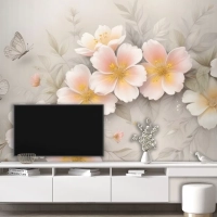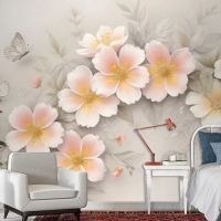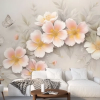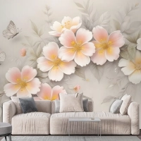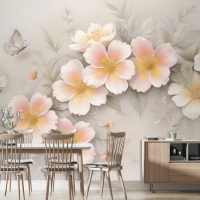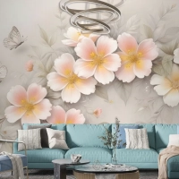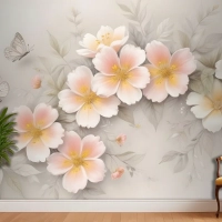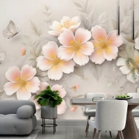 Pembe Çiçek Ve Beyaz Kelebek Duvar Kağıdı