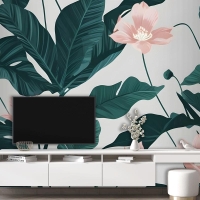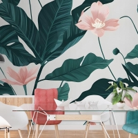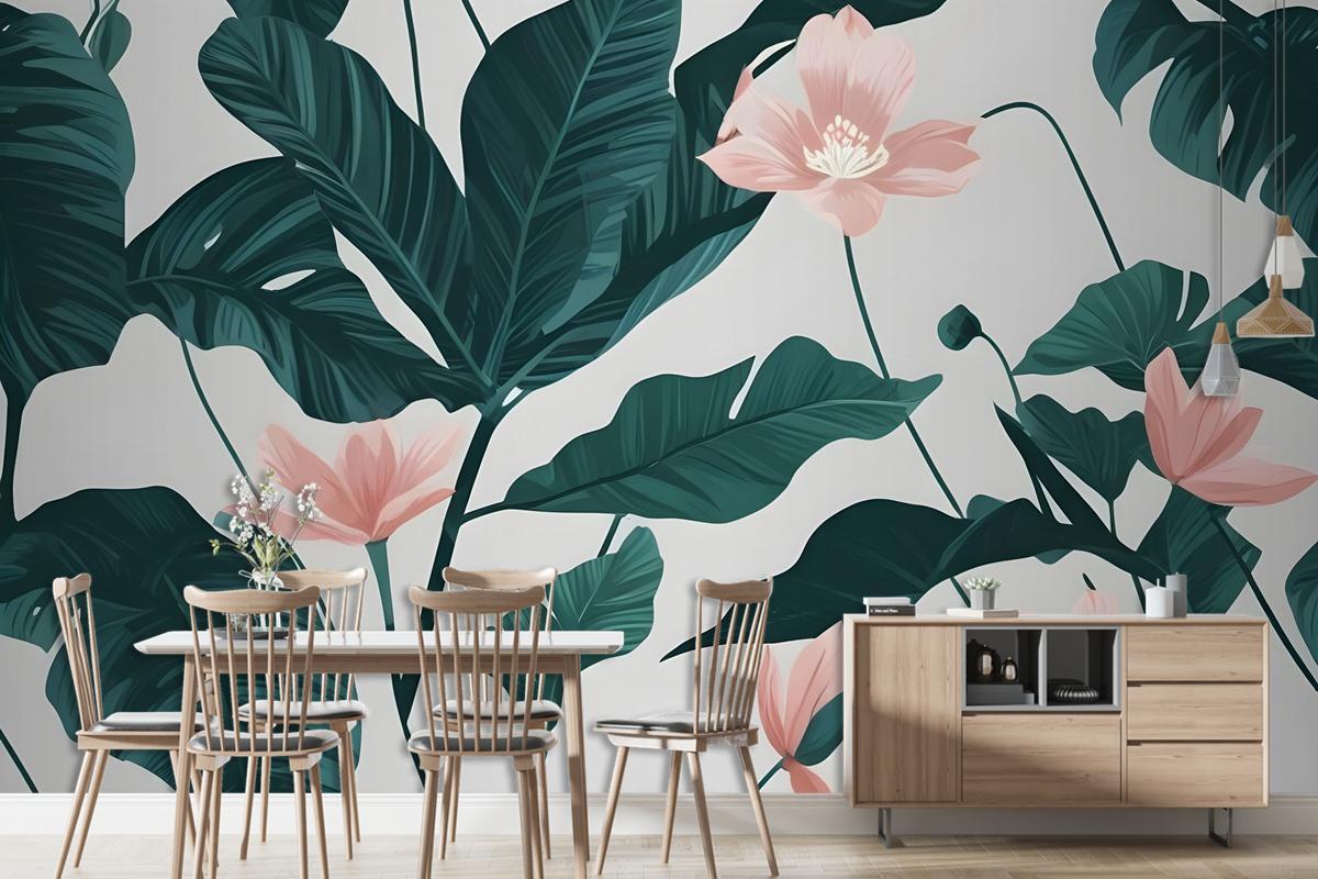 Pembe Çiçek Ve Yapraklar Duvar Kağıdı