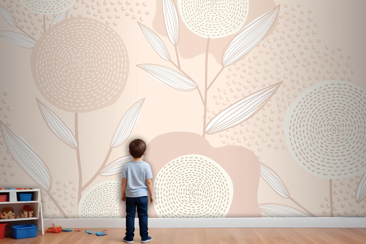 Pembe Çocuk Odası Duvar Kağıdı Duvarında Kadınsı Çiçek Desenli Vektör Arka Plan