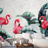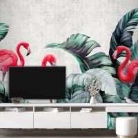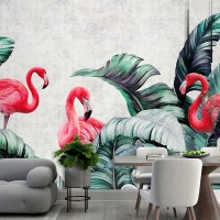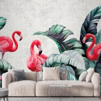 Pembe Flamingolar Ve Tropikal Yapraklar Duvar Kağıdı Tasarımı