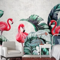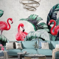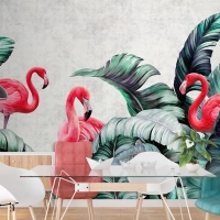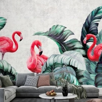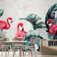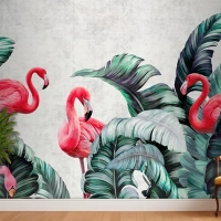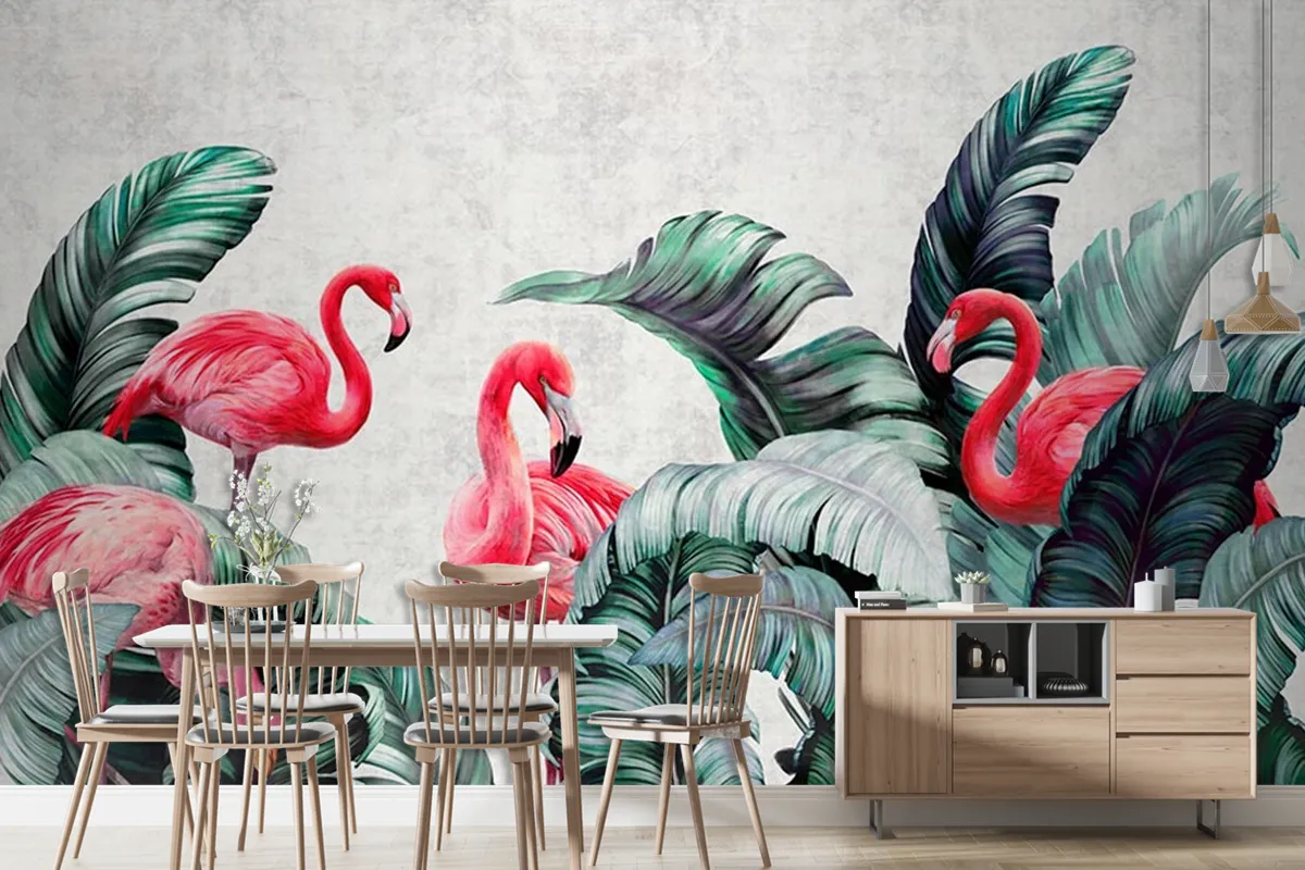 Pembe Flamingolar Ve Tropikal Yapraklar Duvar Kağıdı Tasarımı