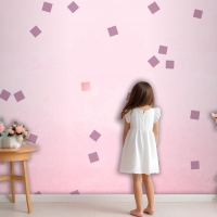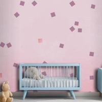Pembe Kare Puantiyeli Çocuk Odası Duvar Kağıdı
