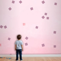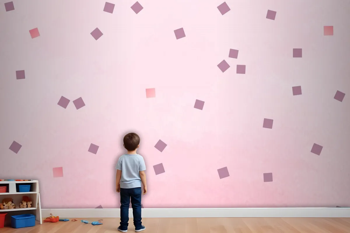 Pembe Kare Puantiyeli Çocuk Odası Duvar Kağıdı
