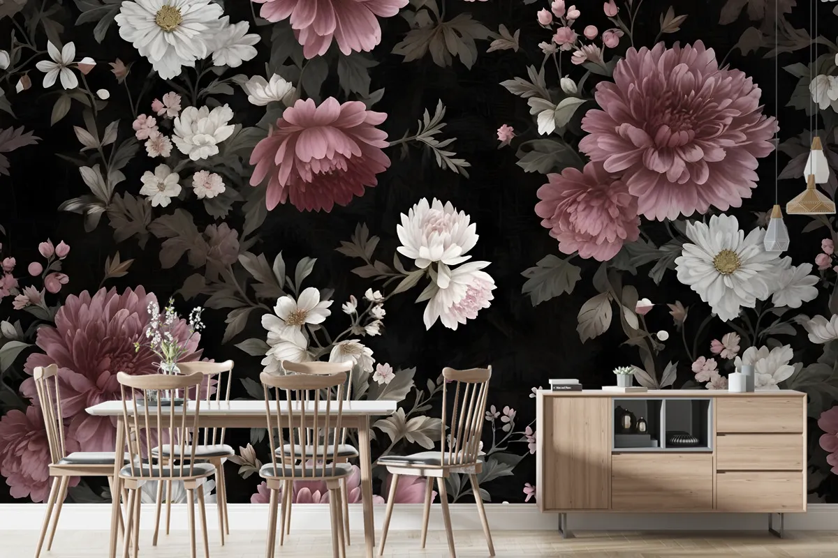 Pembe Krizantem Duvar Kağıdı Ile Koyu Çiçek