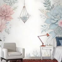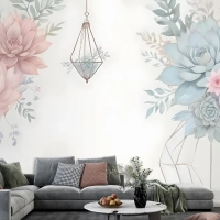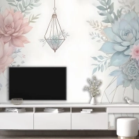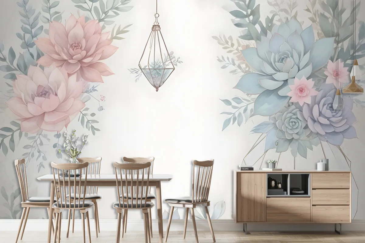 Pembe Mavi Yumuşak Çiçek Duvar Kağıdı