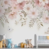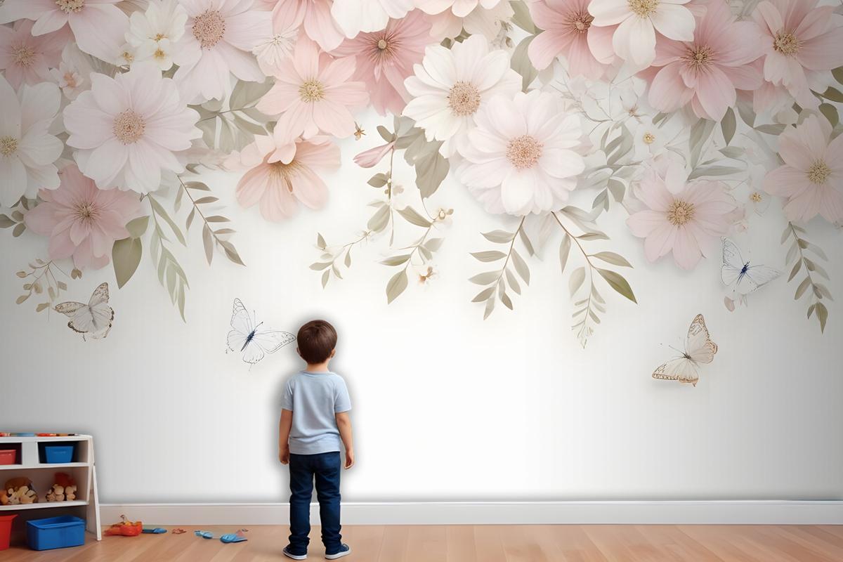 Pembe Ortanca Çiçek Sanatı Çocuk Odası Duvar Kağıdı