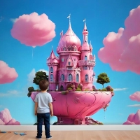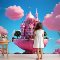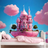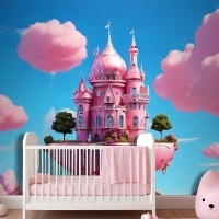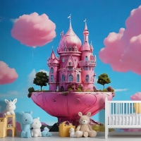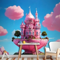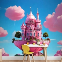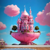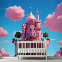 Pembe Sihirli Ev Tasarımı Çocuk Odası Duvar Kağıdı