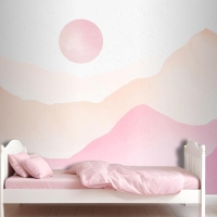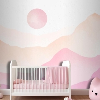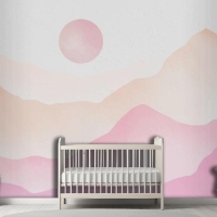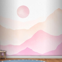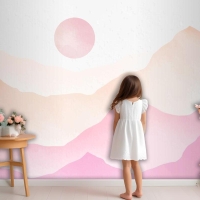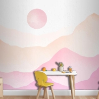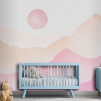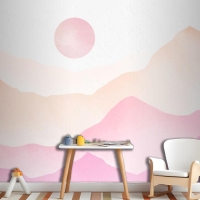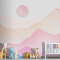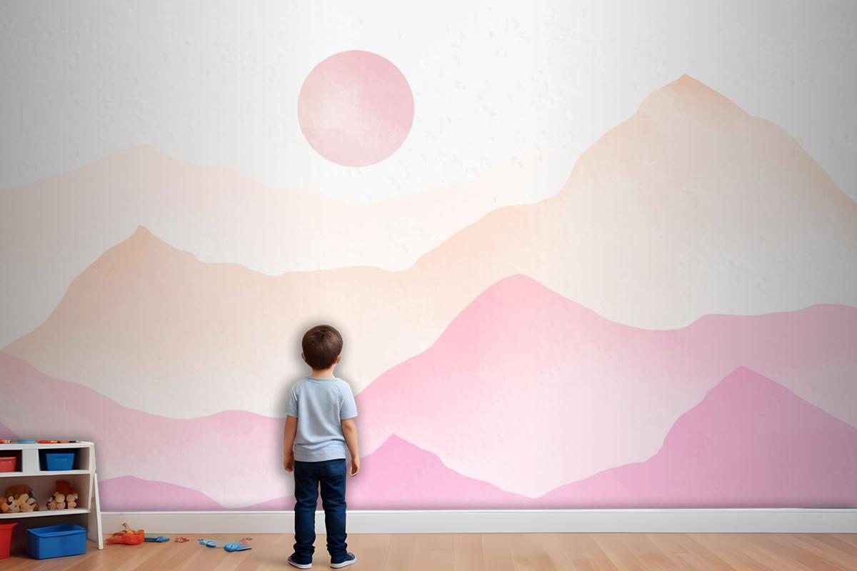 Pembe Suluboya Dağlar Arka Plan Çocuk Odası Duvar Kağıdı