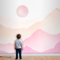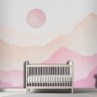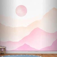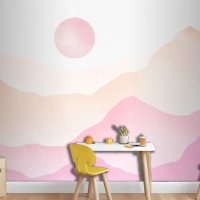 Pembe Suluboya Dağlar Arka Plan Çocuk Odası Duvar Kağıdı