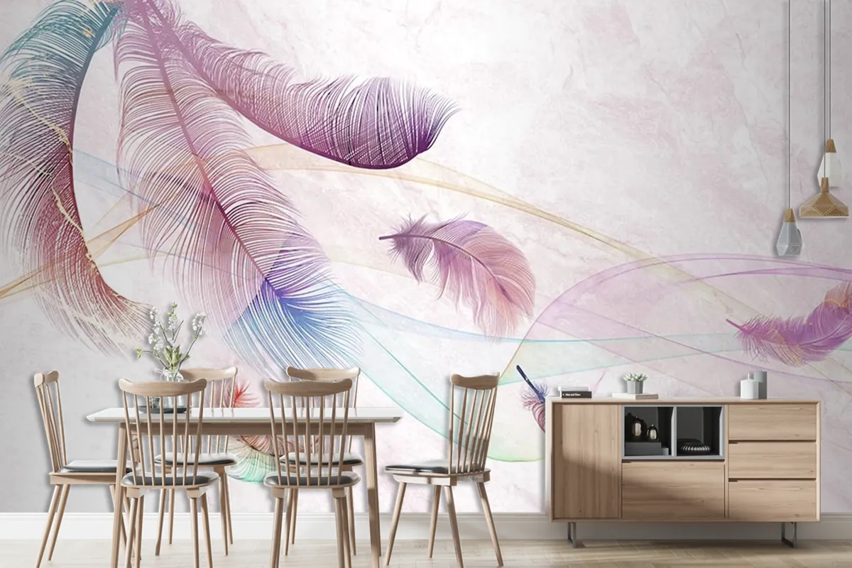 Pembe Tüyler Duvar Kağıdı Tüy Desenli Duvar Kağıdı
