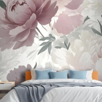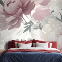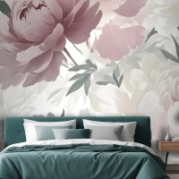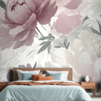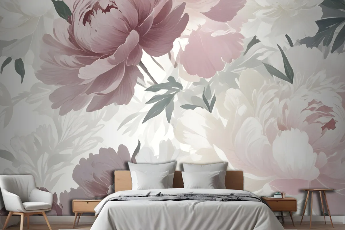 Pembe Ve Beyaz Şakayık Çiçeği Yatak Odası Duvar Kağıdı