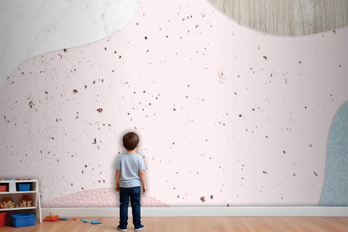 Pembe Ve Mavi Kolaj Dokulu Çocuk Odası Duvar Kağıdı