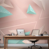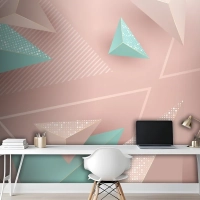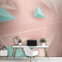 Pembe Ve Yeşil Üçgenler Ile Gerçekçi Arka Plan Ofis Duvar Kağıdı