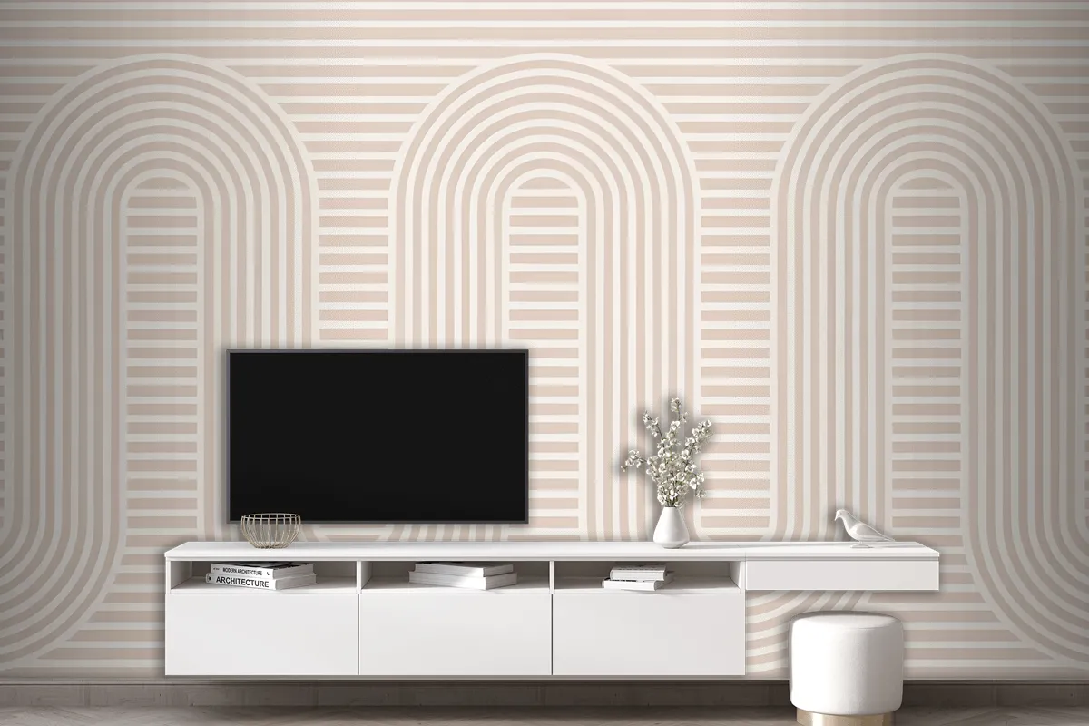 Pembe Zen Bahçesi Eğrileri Ve Çizgileri Oturma Odası Salon Duvar Kağıdı