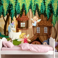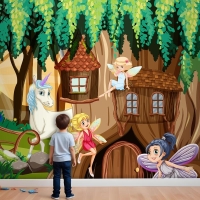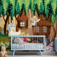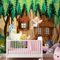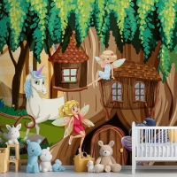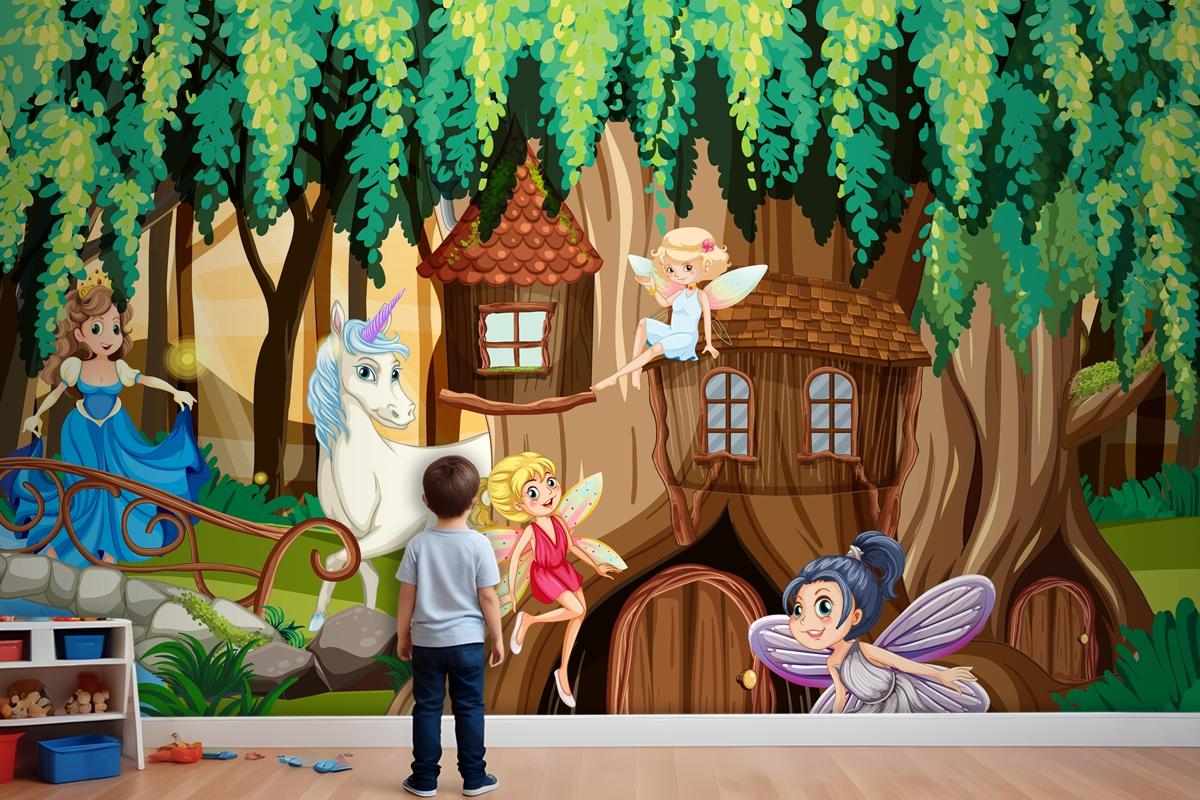 Periler Ve Tek Boynuzlu Fantezi Orman Çocuk Odası Duvar Kağıdı