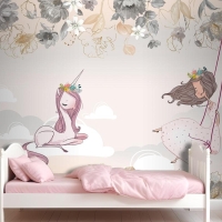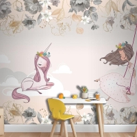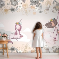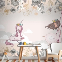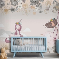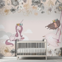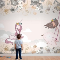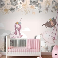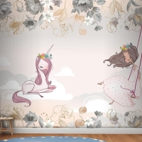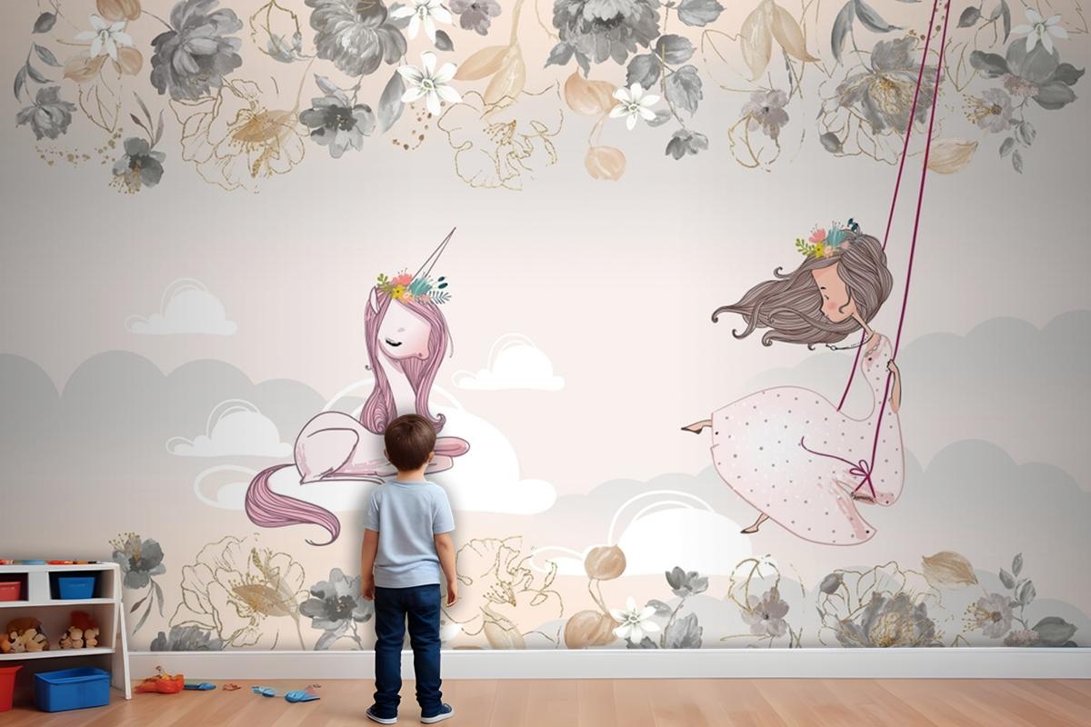 Prenses Ve Unicorn Çocuk Odası Duvar Kağıdı