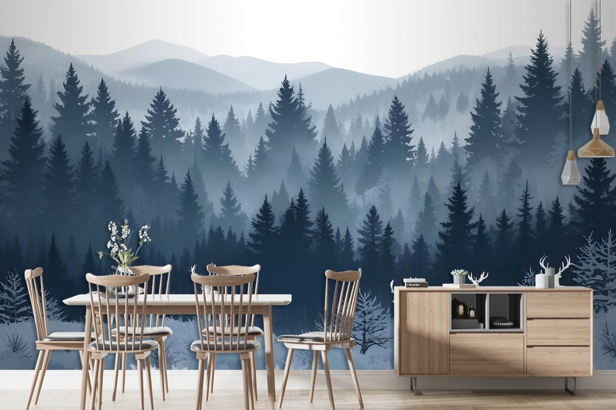 Puslu Orman Manzarası Ve Boynuzlu Geyik Duvar Kağıdı