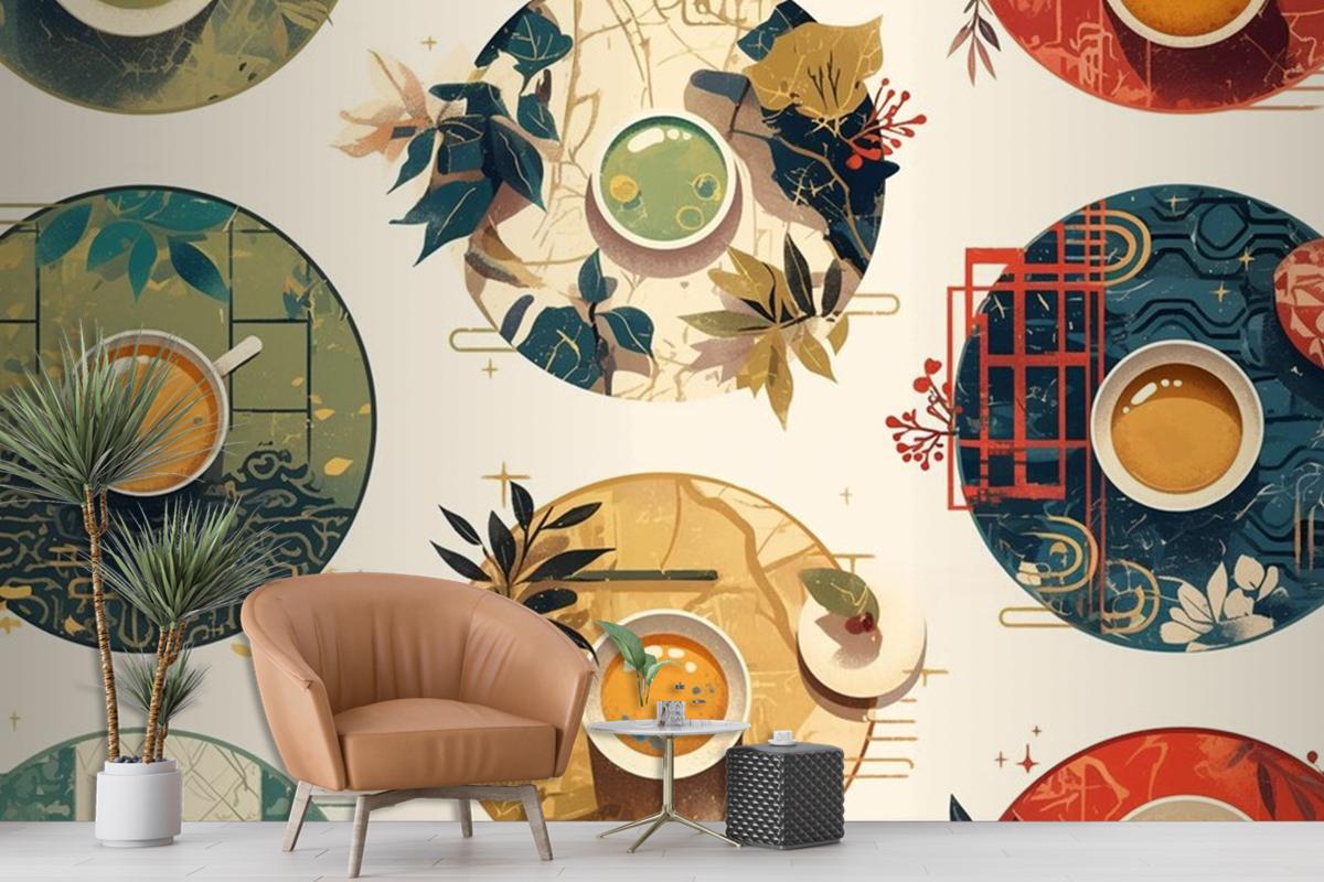 Rafine Unsurlar Vietnam Çay Desenleri Cafe Duvar Kağıdı
