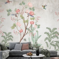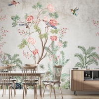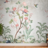 Renkli Ağaç Dalları Ve Çiçekler Tropikal Hayvanlar Duvar Kağıdı