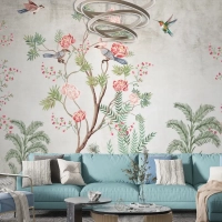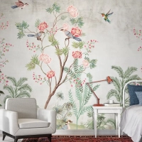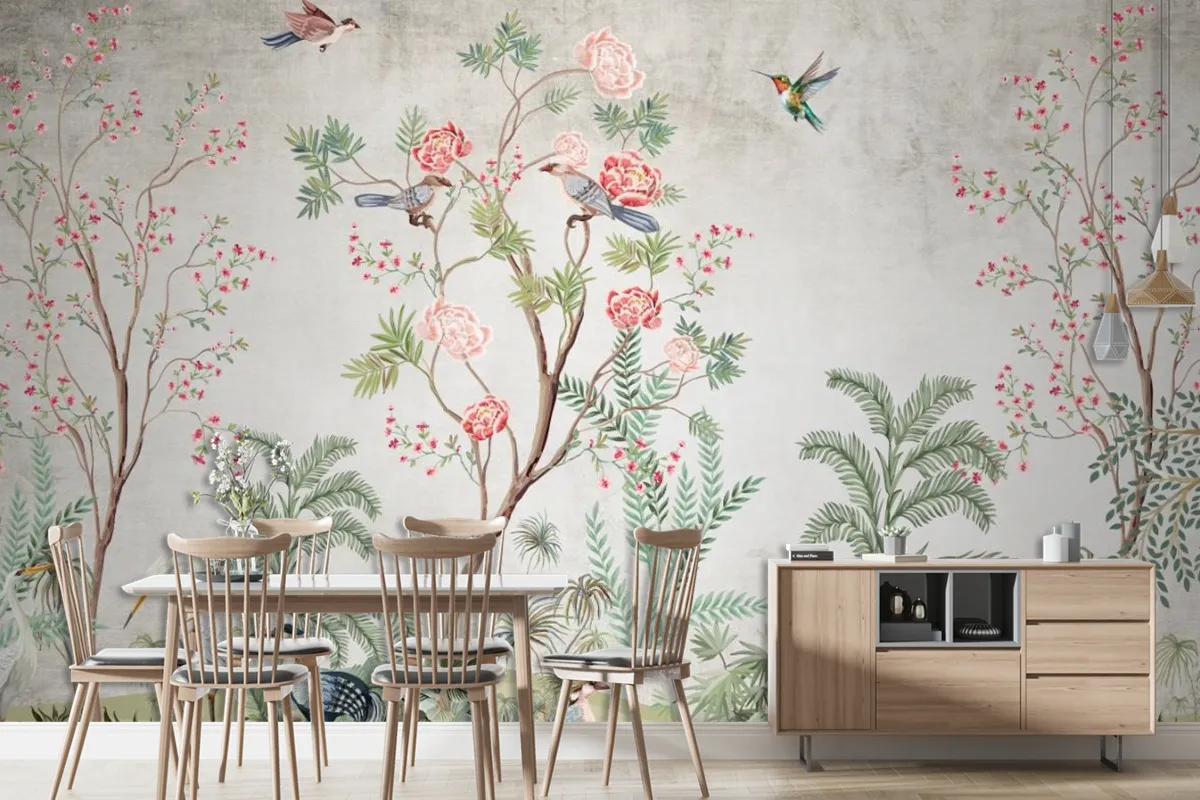 Renkli Ağaç Dalları Ve Çiçekler Tropikal Hayvanlar Duvar Kağıdı
