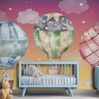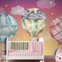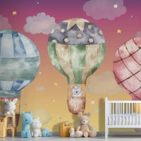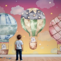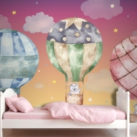 Renkli Balonlar Üzerinde Uçan Sevimli Koç Çocuk Odası Duvar Kağıdı