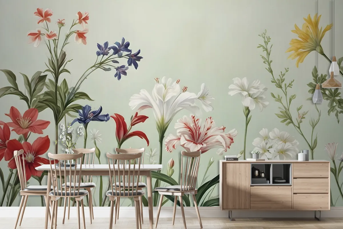 Renkli Bitkiler Ve Çiçekler Duvar Kağıdı