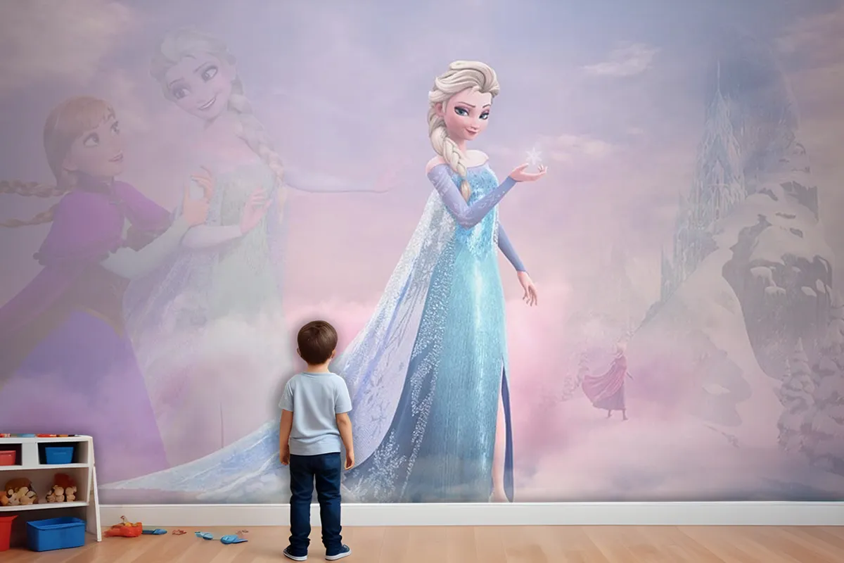 Renkli Bulutlar Arasında Elsa Çocuk Odası Duvar Kağıdı
