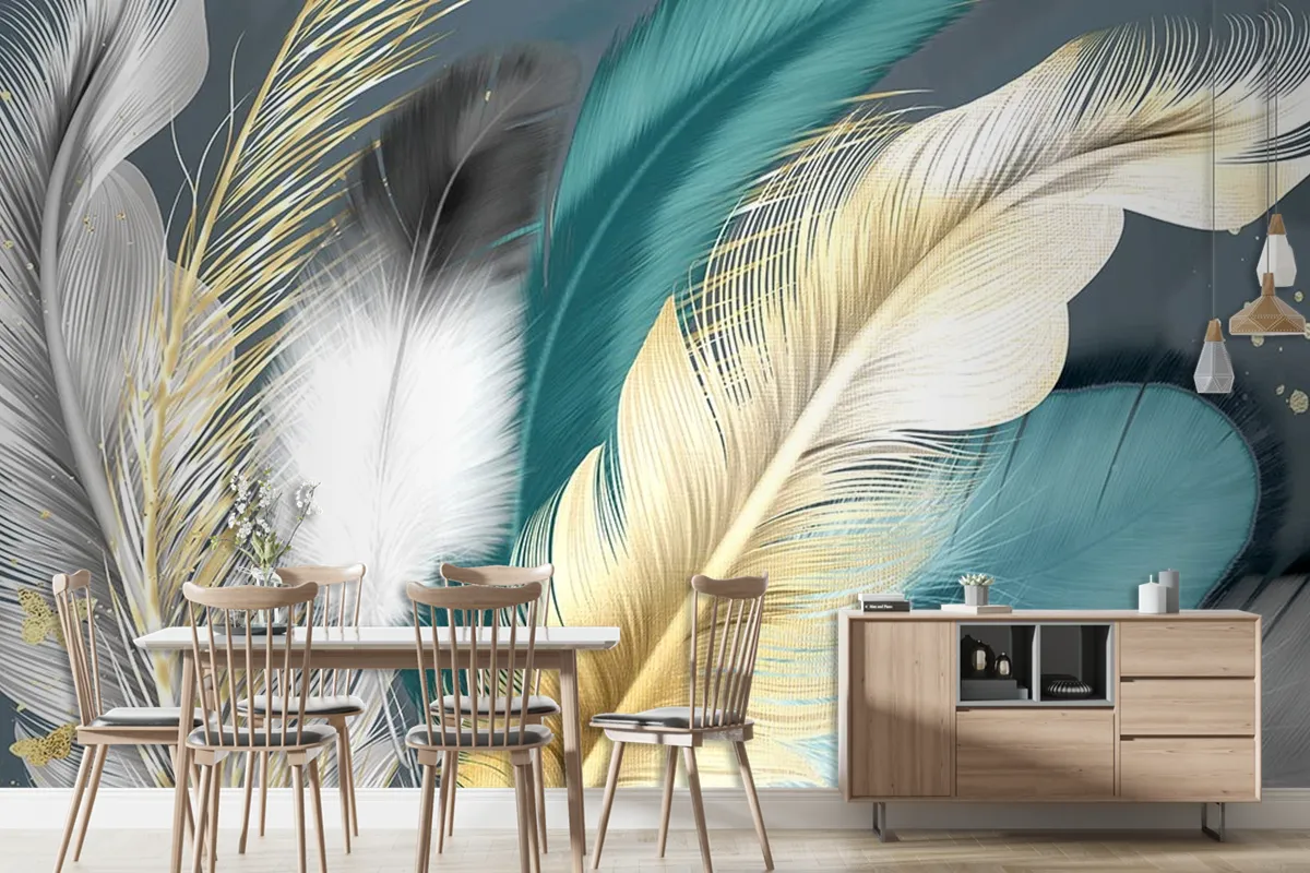 Renkli Büyük Tüyler Duvar Kağıdı Tüy Desen Duvar Kağıdı