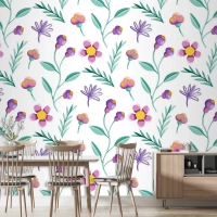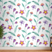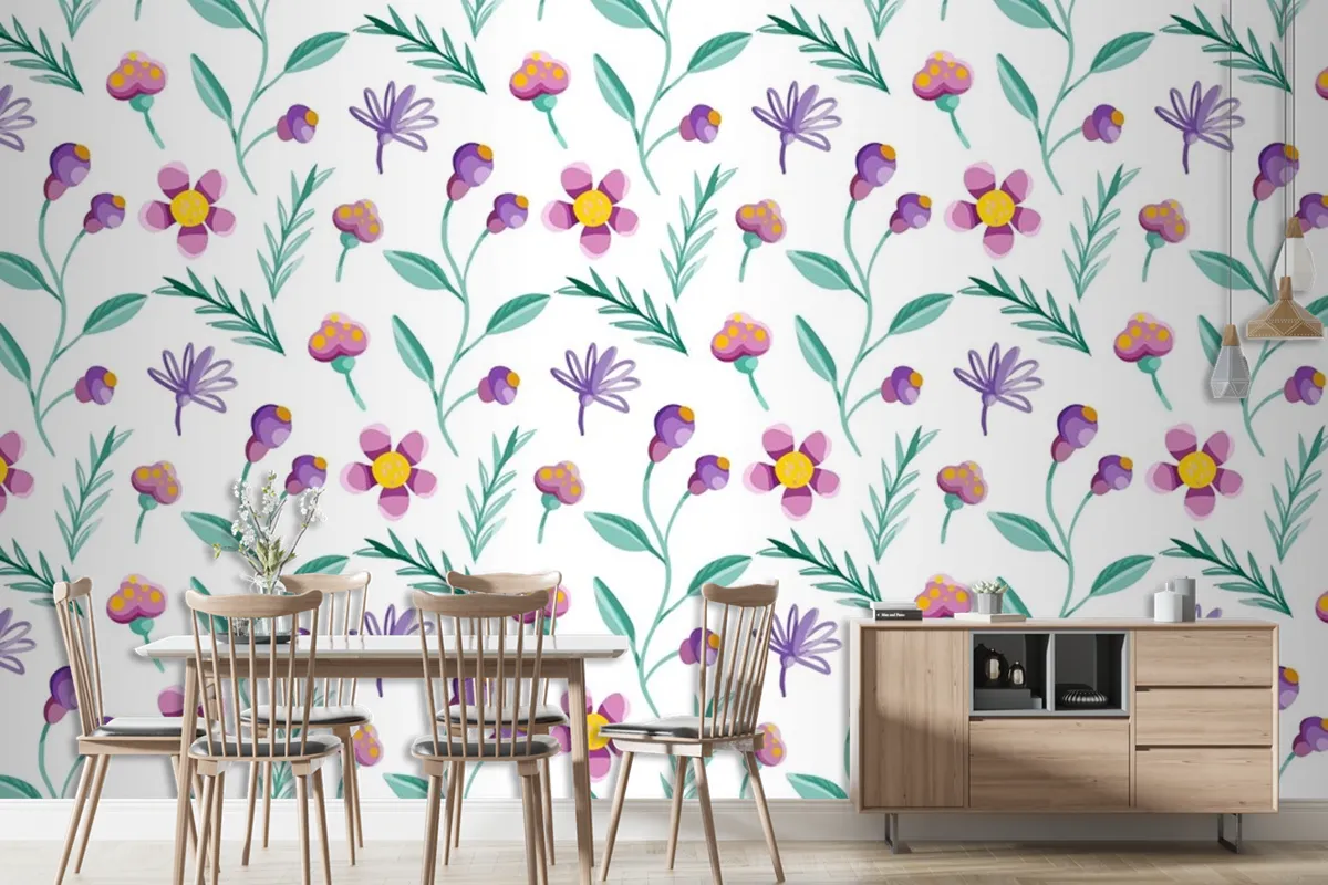 Renkli Çiçek Desenli Duvar Kağıdı