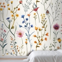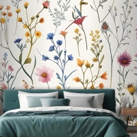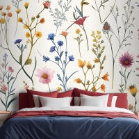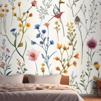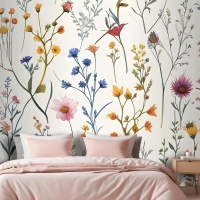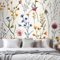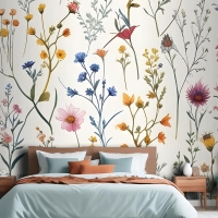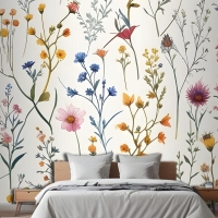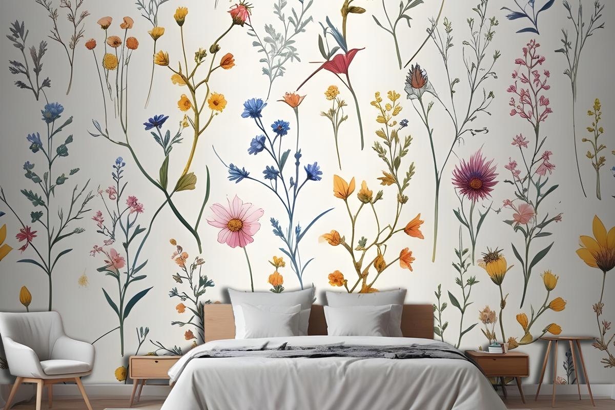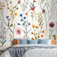 Renkli Çiçekler Yatak Odası Duvar Kağıdı