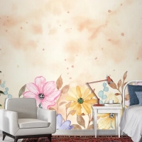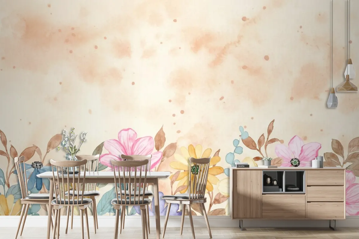 Renkli Çiçekli Bahçe Arkaplanı Suluboya Duvar Kağıdı