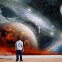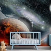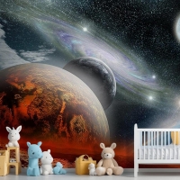 Renkli Galaksi Gezegenler Çocuk Genç Odası Çocuk Odası Duvar Kağıdı