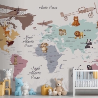 Renkli Kıtalar Öğretici Çocuk Odası Duvar Kağıdı