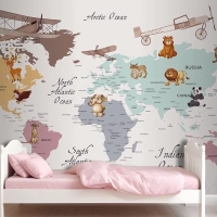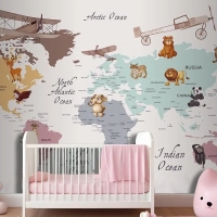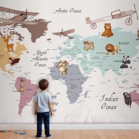 Renkli Kıtalar Öğretici Çocuk Odası Duvar Kağıdı