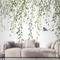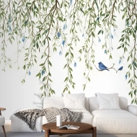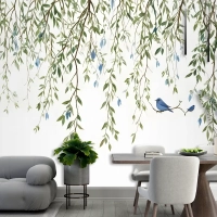 Renkli Kuşlar Duvar Kağıdı Ile Yeşil Asılı Yapraklar