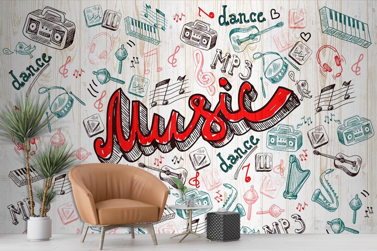 Renkli Müzik Yazısı Ve Şekiller Özel Tasarım Duvar Kağıdı