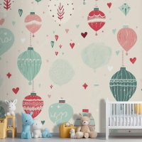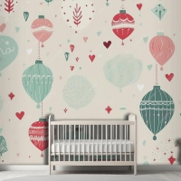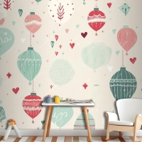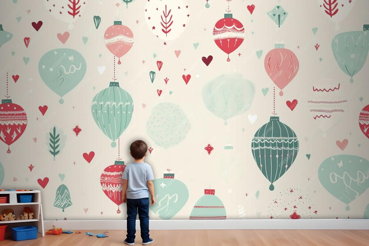 Renkli Noel Dikişsiz Desen Çocuk Odası Duvar Kağıdı