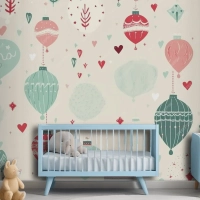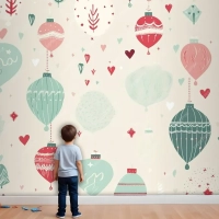 Renkli Noel Dikişsiz Desen Çocuk Odası Duvar Kağıdı