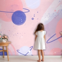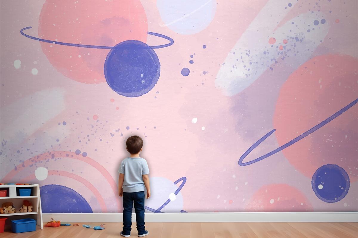 Renkli Suluboya Galaxy Çocuk Odası Duvar Kağıdı
