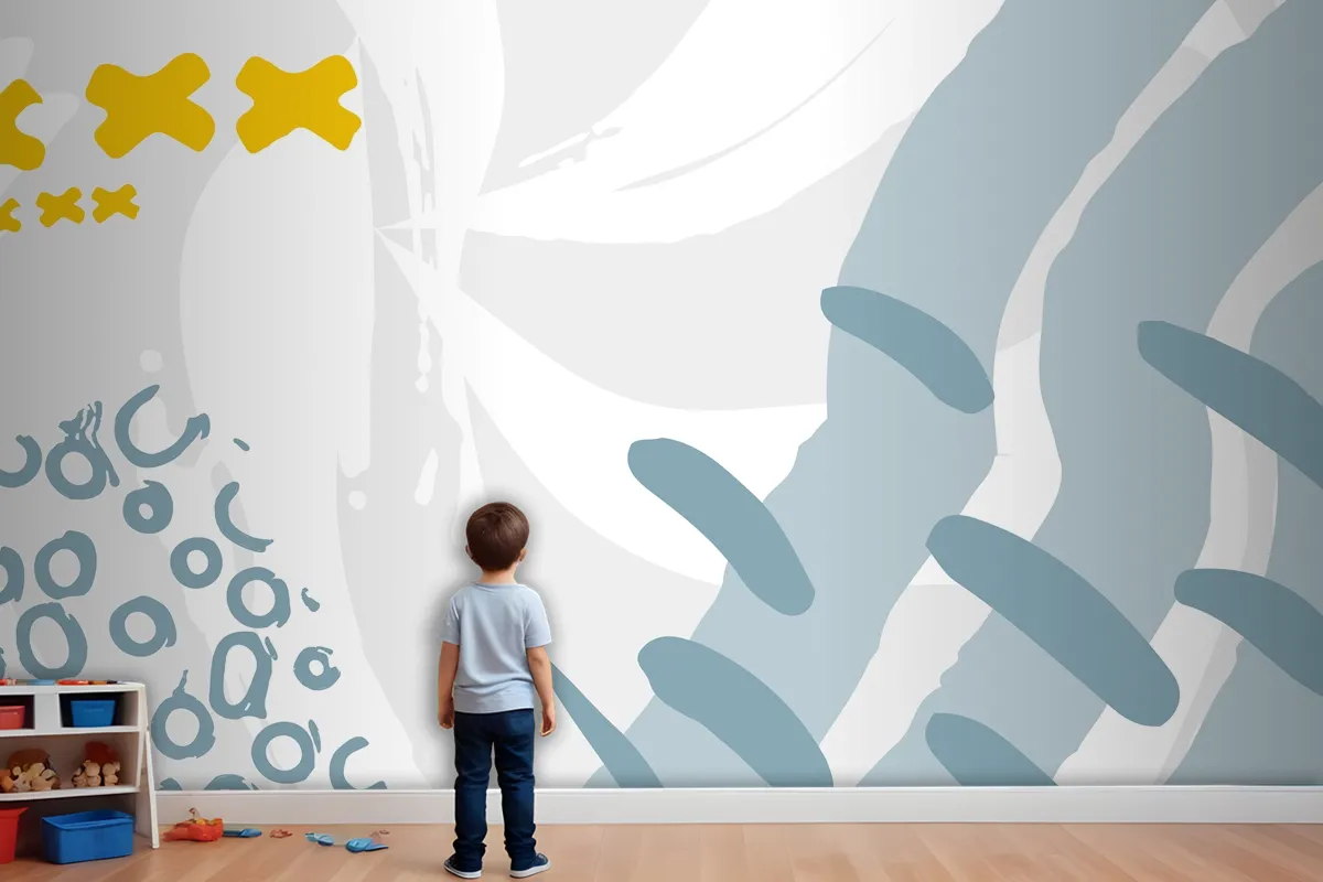 Renkli Tasarımlı Soyut Şekil Renk Sıçrama Çocuk Odası Duvar Kağıdı